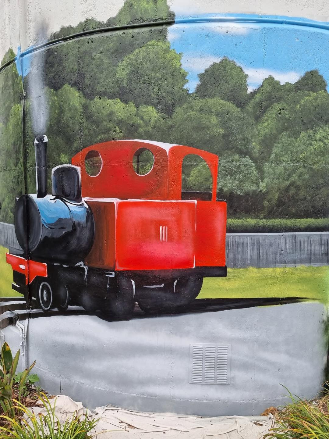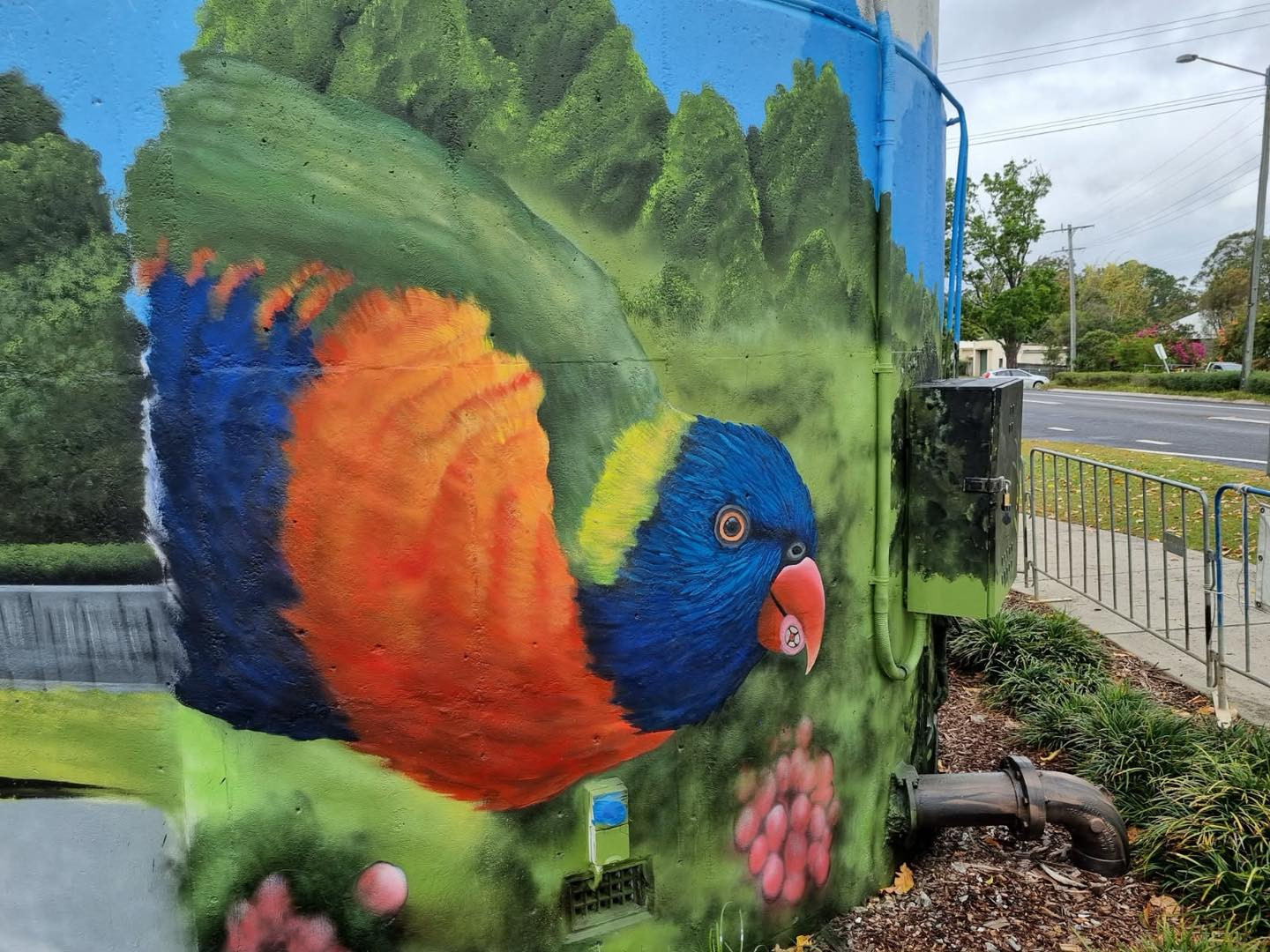 The mural, created by talented artist Ben Higgins and funded by the Lions, has transformed the once plain tower into a colourful landmark celebrating community spirit and creativity.